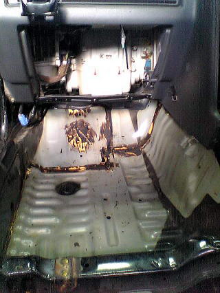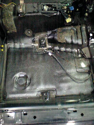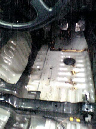 ジュータンを外すと、鉄板が見えるけど、そこに張ってあるのが、静粛性を発揮するアスファルトシート!