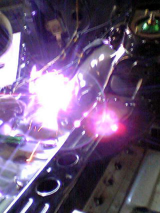 もの凄く火花が跳ねるんだよね。かなり危険な作業です。ヤケドに注意です。