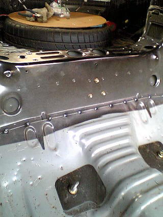 トランクスペースの第1弾が終了したところで、次にリヤシート部分のスポット増しです。