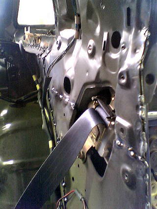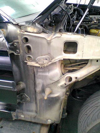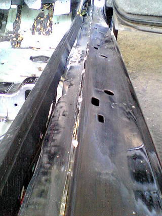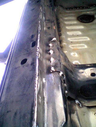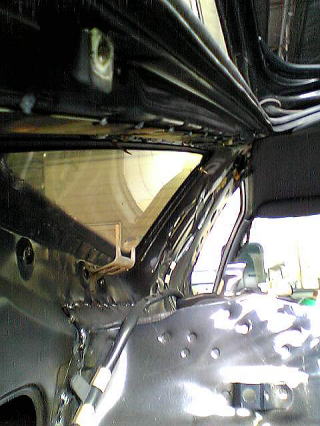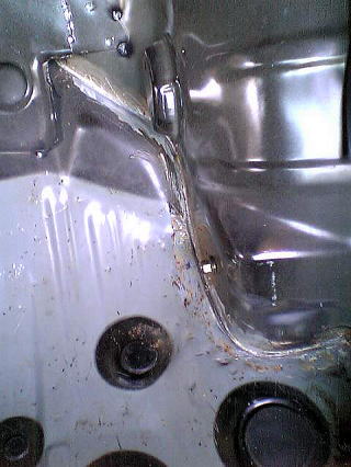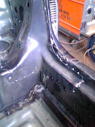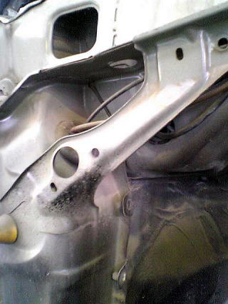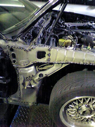 Bピラーとサイドコンツーンとの付け根、ここは4方向から力を受けるところだからボディー剛性の重要なところです。