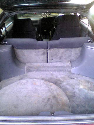 軽量化のために、内装とアスファルトシートは剥がしてありま〜す。もちろん2名乗車に構造変更してありますよ。