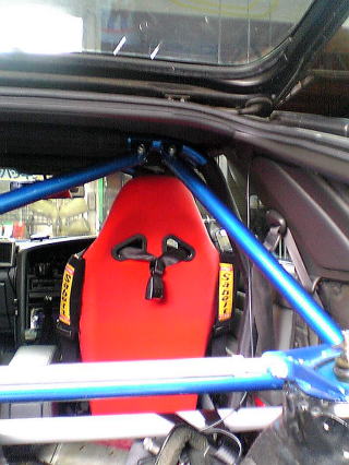 ロールバーのリヤとセンターの固定がようやく終了、あとはフロントだけになりました。
